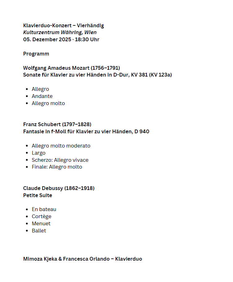 - 6 June: Piano Four hands, Two Pianos recital at the Skopje Philharmonic Hall